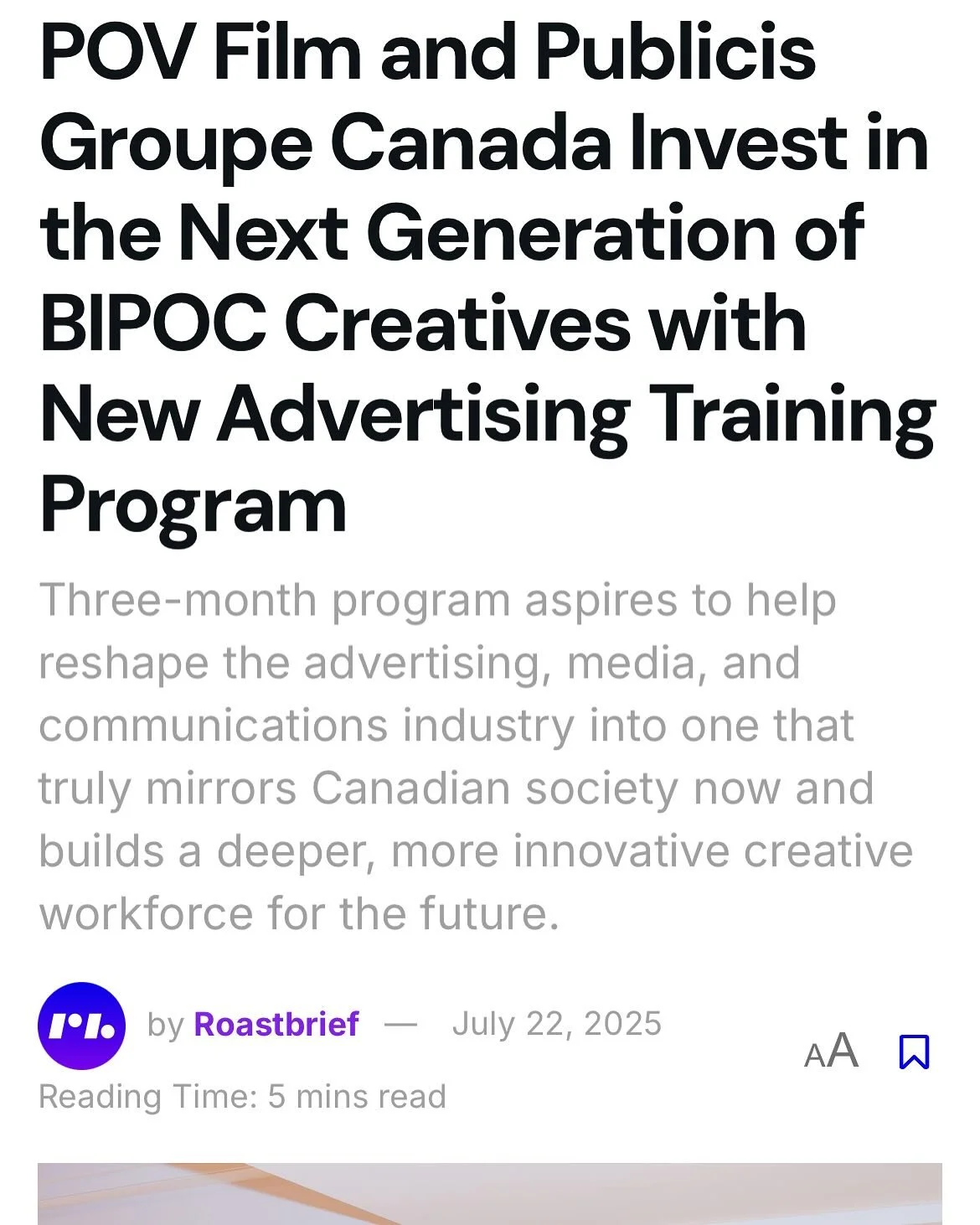 POV partners with talented youth to champion diversity and inclusion within content production industries by increasing access to skills training, job placements, mentorship and professional development opportunities.